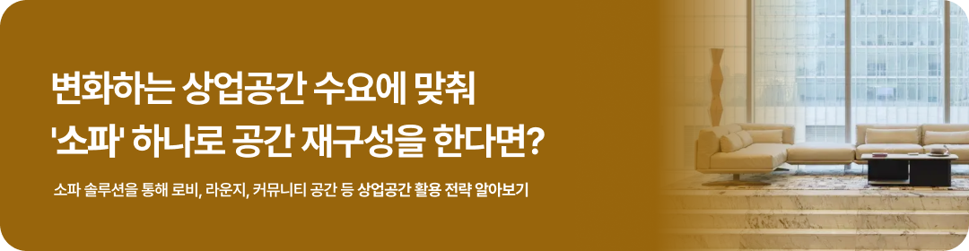 오피스 로비, 호텔 라운지, 리테일 공간 등 상업 공간 내 소파는 방문객이 처음 마주하는 인상이자 경험의 ‘첫 장면’을 책임지는 오브제입니다. 하지만 시간이 흐르면 형태가 흐트러지고, 소재는 마모될 수밖에 없습니다. 자연스럽게 공간의 이미지도 바뀌기 마련이죠. 따라서 약 5~7년 가까이 사용하는 소파를 긴 시간 잘 유지하는 것도 중요합니다. 눌림, 변색, 얼룩 하나가 고급스러운 분위기를 무너뜨리지 않도록 관리가 필요한 이유입니다.